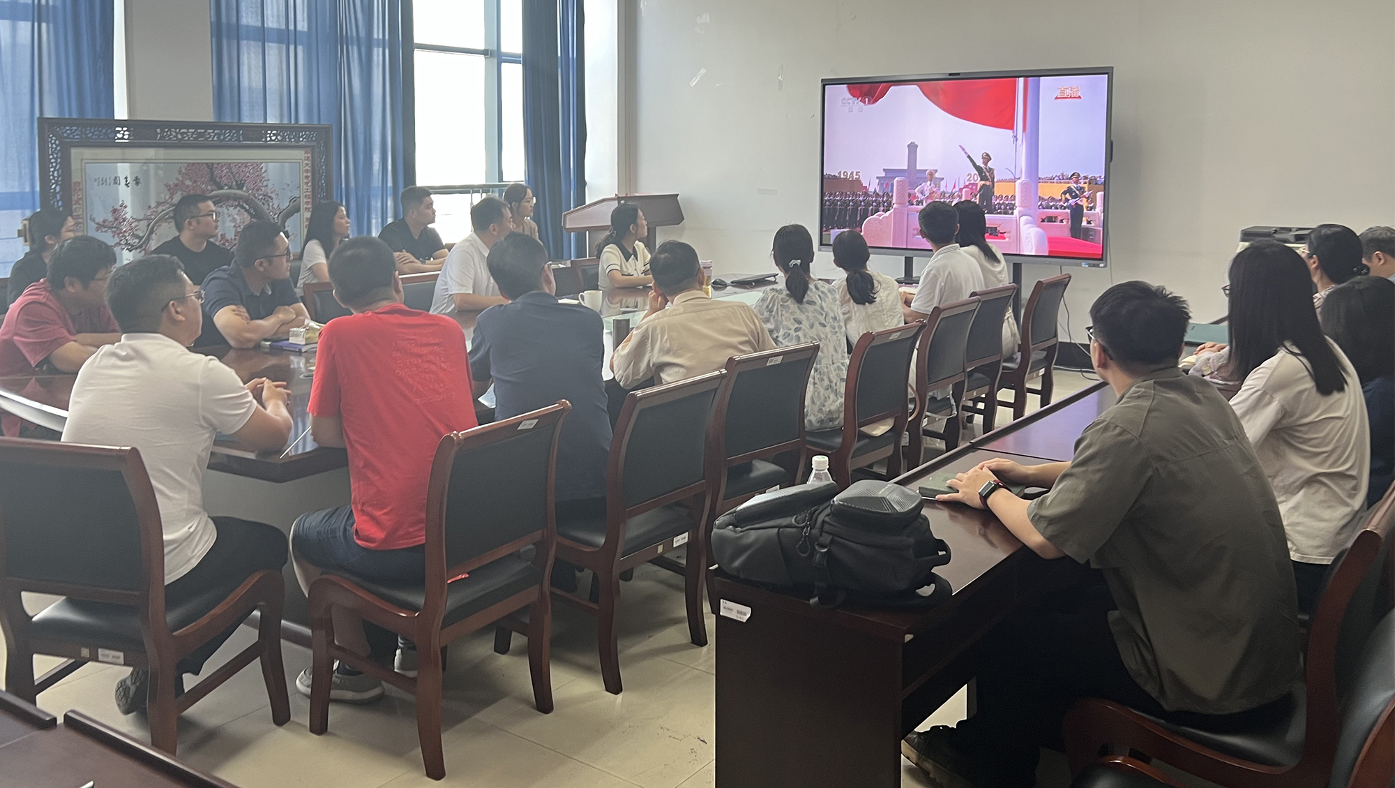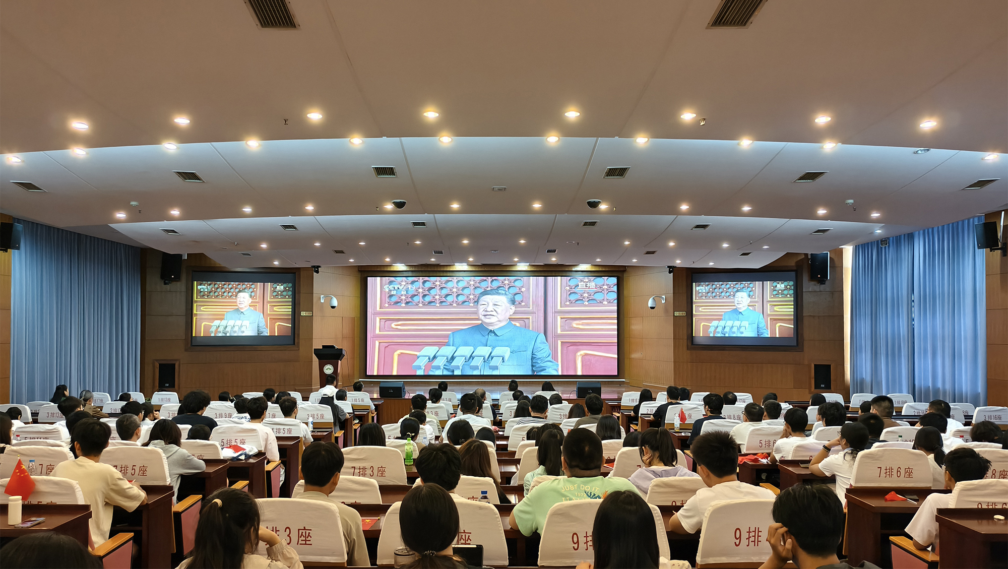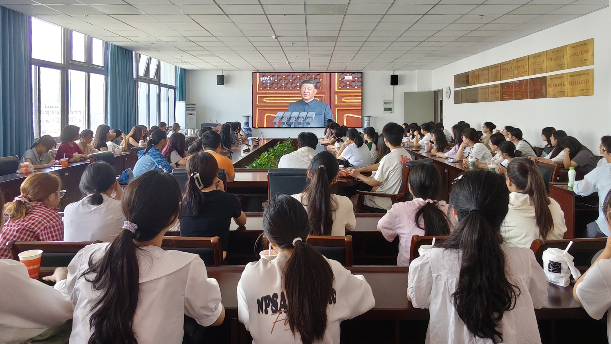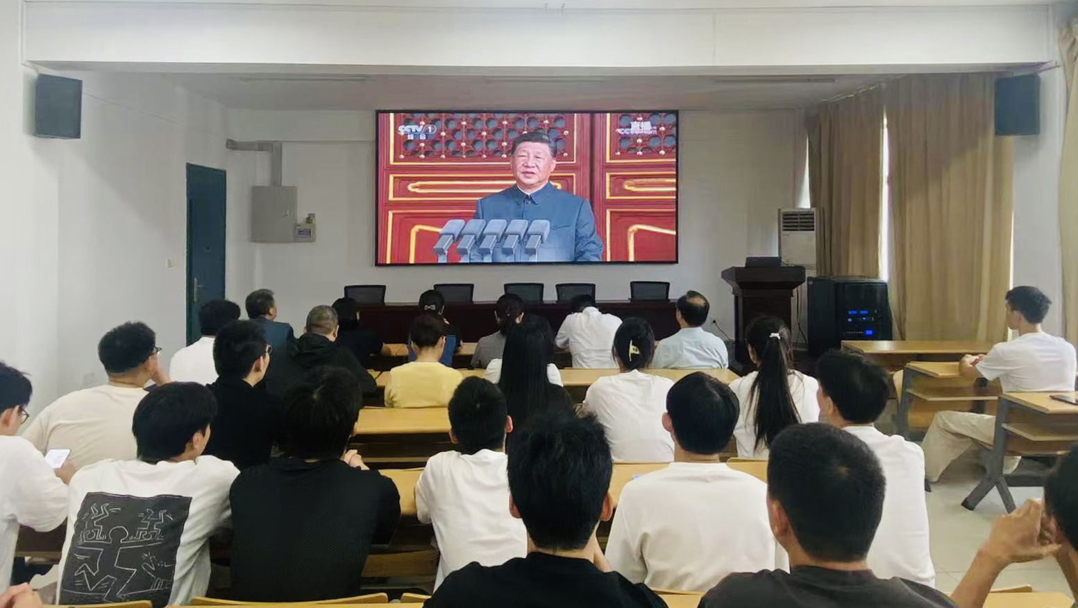 铭记历史、缅怀先烈、珍爱和平、开创未来。9月3日,纪念中国人民抗日战争暨世界反法西斯战争胜利80周年大会在北京天安门广场隆重举行。中共中央总书记、国家主席、中央军委主席习近平发表的重要讲话高屋建瓴、激人奋进,气势磅礴的阅兵式振奋民族精神、凝聚全国力量。beat365师生密切关注大会,第一时间收看直播盛况,共同感受国强、感受军威,为阅兵喝彩,为祖国自豪。