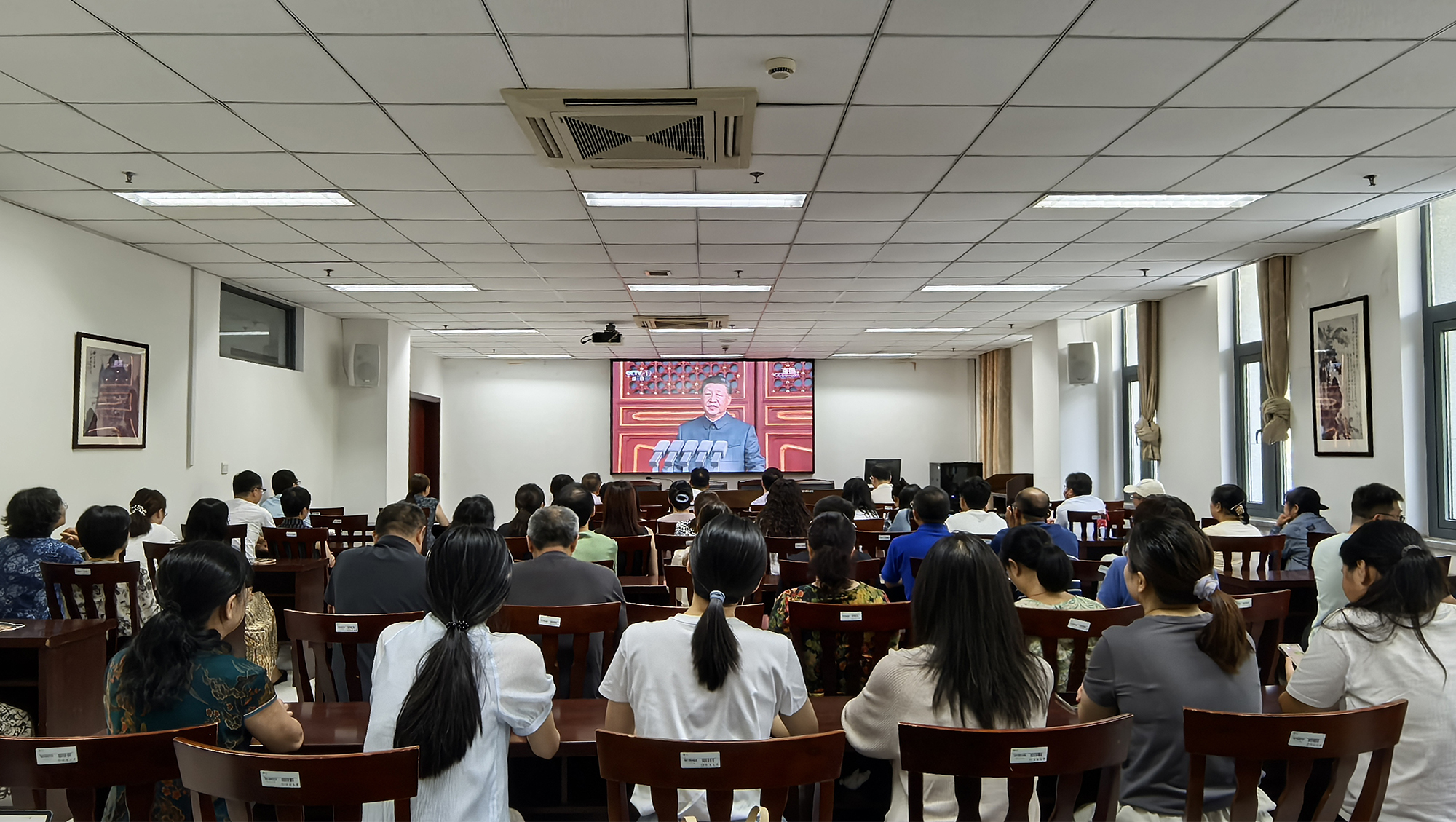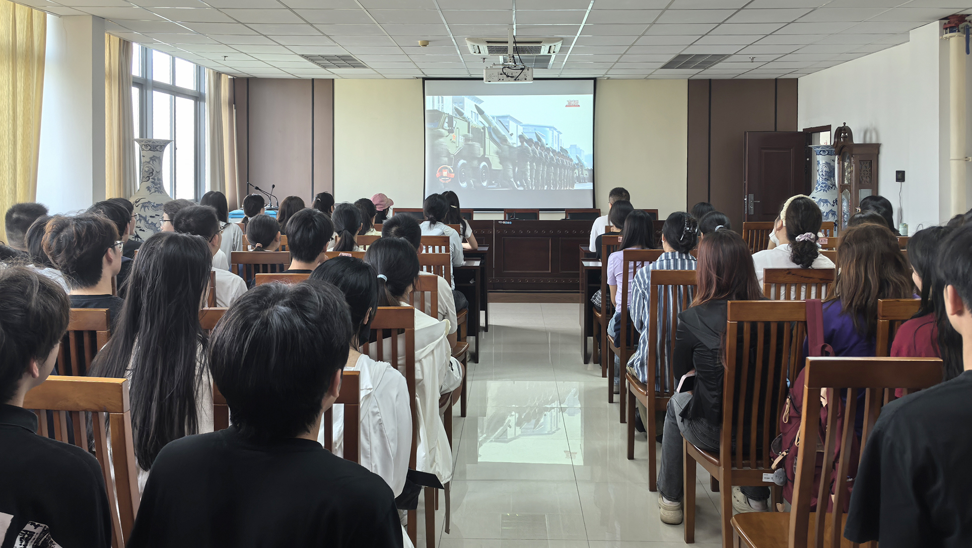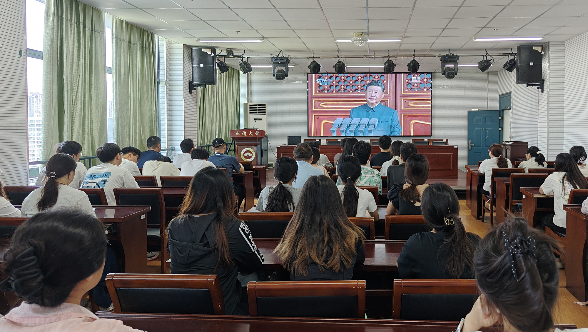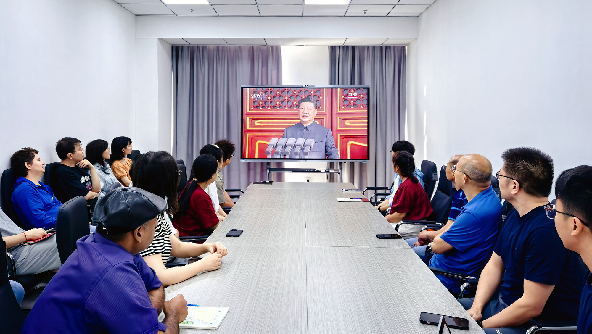 铭记历史、缅怀先烈、珍爱和平、开创未来。9月3日,纪念中国人民抗日战争暨世界反法西斯战争胜利80周年大会在北京天安门广场隆重举行。中共中央总书记、国家主席、中央军委主席习近平发表的重要讲话高屋建瓴、激人奋进,气势磅礴的阅兵式振奋民族精神、凝聚全国力量。beat365师生密切关注大会,第一时间收看直播盛况,共同感受国强、感受军威,为阅兵喝彩,为祖国自豪。