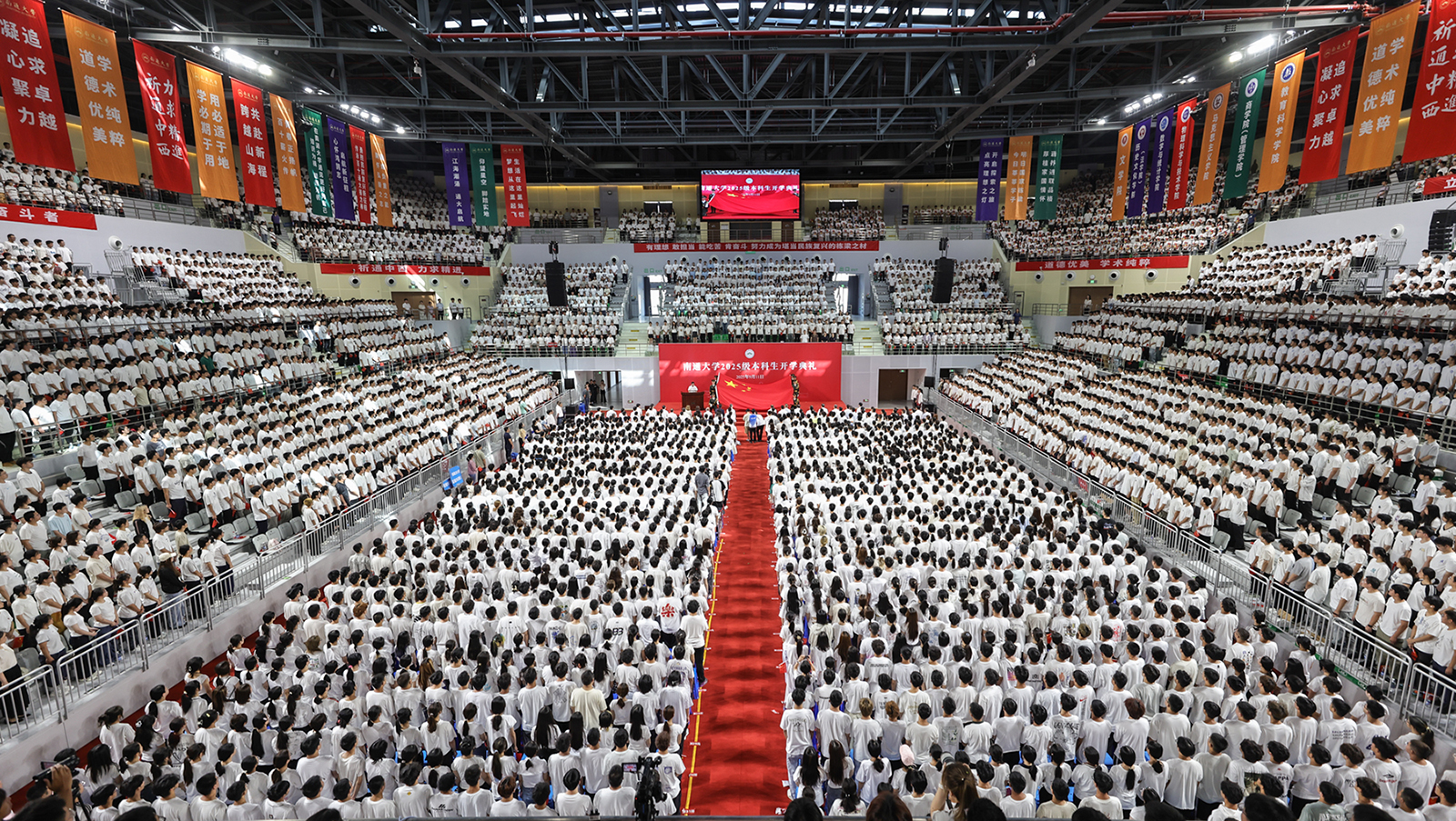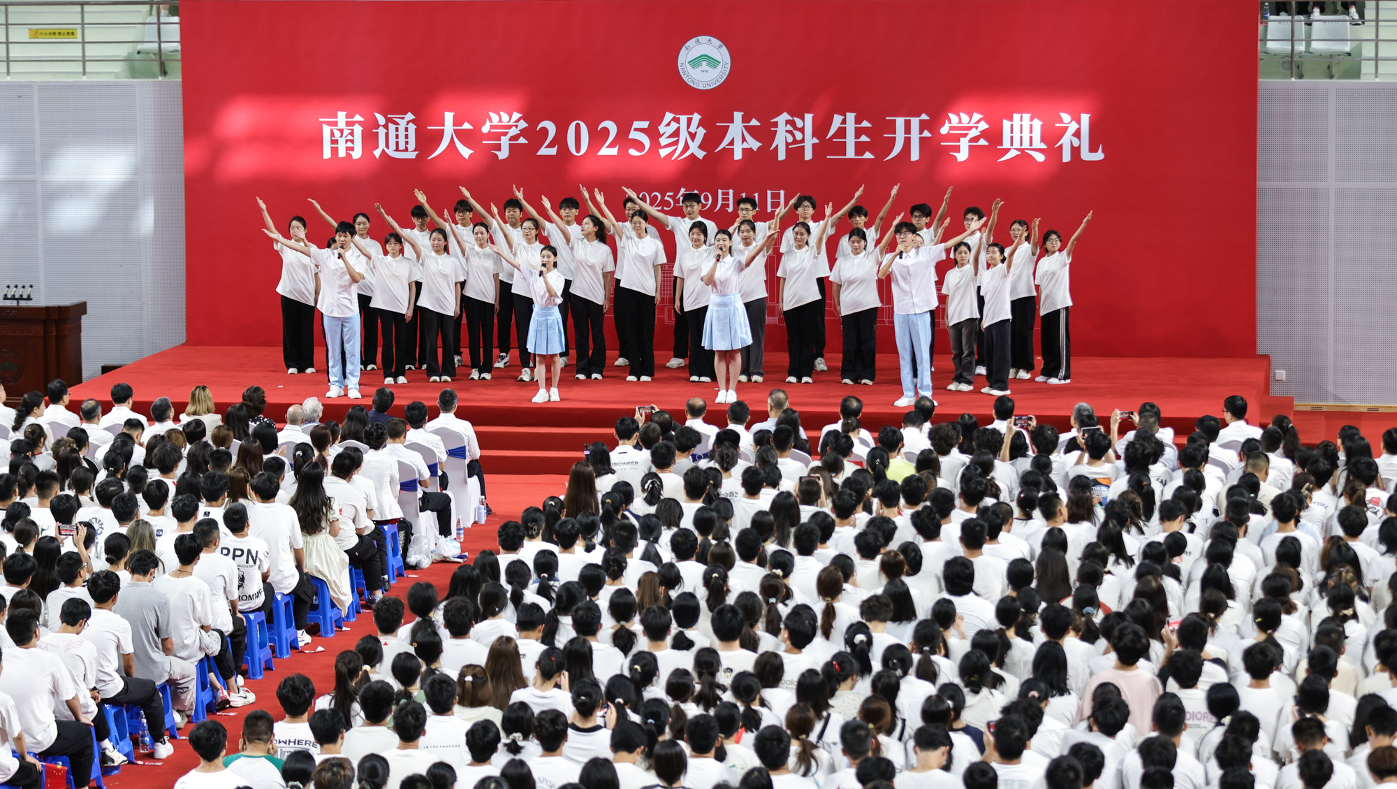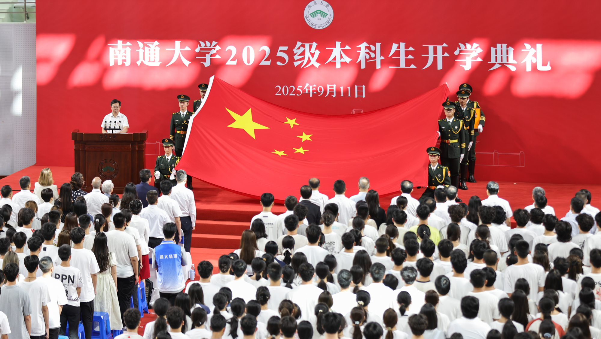 9月11日,beat3652025级本科生开学典礼分别在啬园校区、启东校区举行。两校区体育馆内师生满座,洋溢着青春的朝气。校党委书记杨宇民为新生代表佩戴校徽。校长王建浦在典礼上讲话。全体本科新生戴上校徽,正式成为一名通大人。