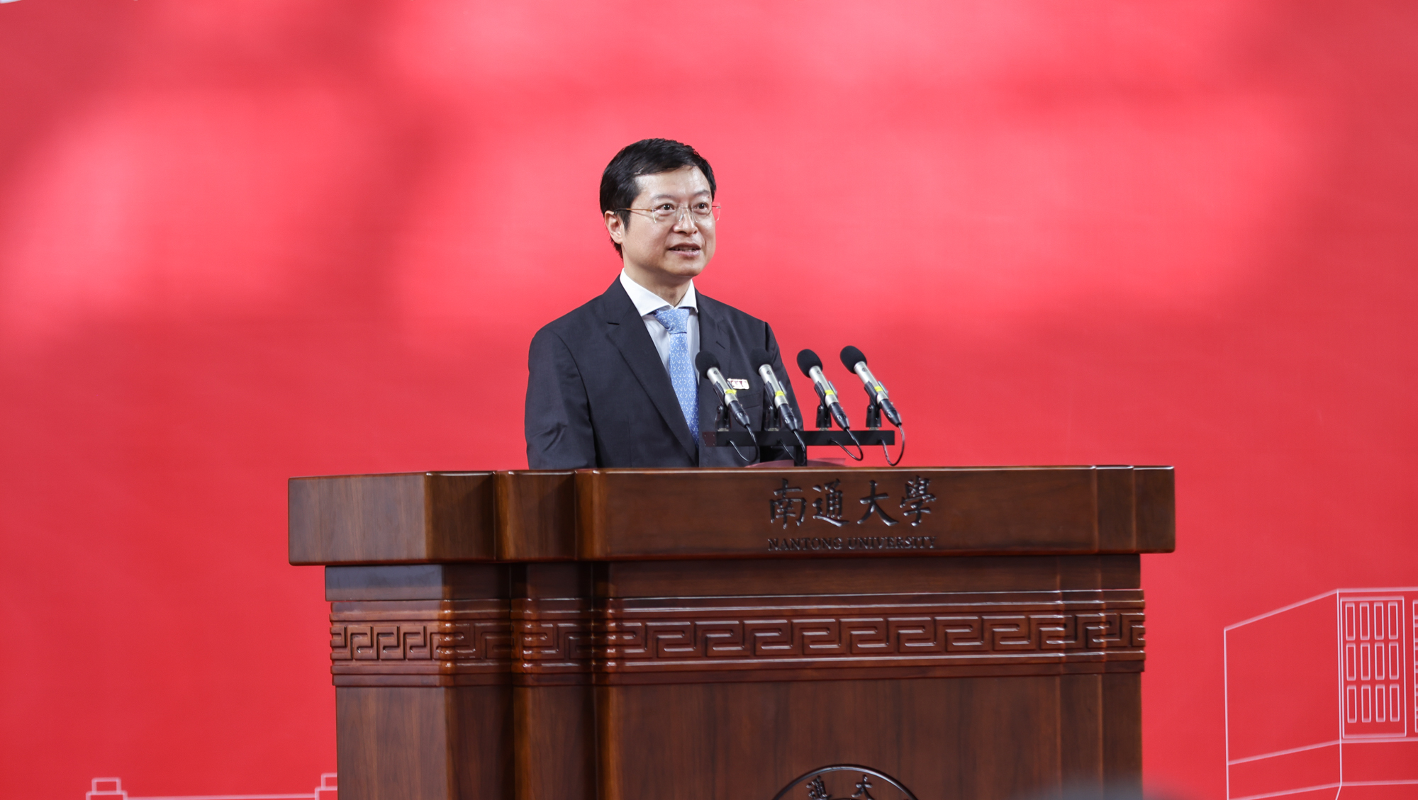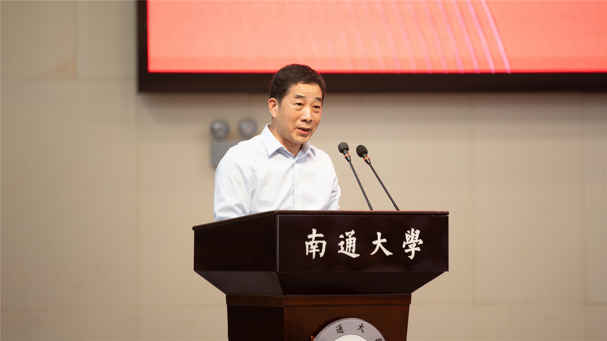 王建浦以《赓续家国情怀 激扬创新活力 以卓越之笔书写人生华章》为题,为全体本科新生上了一堂生动的“开学第一课”。他代表学校对新同学表示热烈欢迎,向辛勤培育的家长、老师致以崇高的敬意,并从建校113年的历史、先校长张謇的办学理念和价值追求,通过详细的事例,生动介绍了通大是一所有着鲜明的爱国底色、有着务实的担当精神、有着深沉的大爱灵魂的大学,始终将自身发展与国家前途、民族命运紧紧联系在一起,致力于服务经济社会发展,注重学生全面发展。他说,站在新的历史起点,通大迎来了最好的发展时期,全体通大人正以追求卓越的奋进姿态加快建设特色鲜明的国内一流大学。他期待同学们在通大这片承载着荣光的热土,广泛地阅读、独立地思考、自由地探索、大胆地实践,通过不懈努力创造属于自己的精彩人生,续写通大更加美好的时代诗篇。