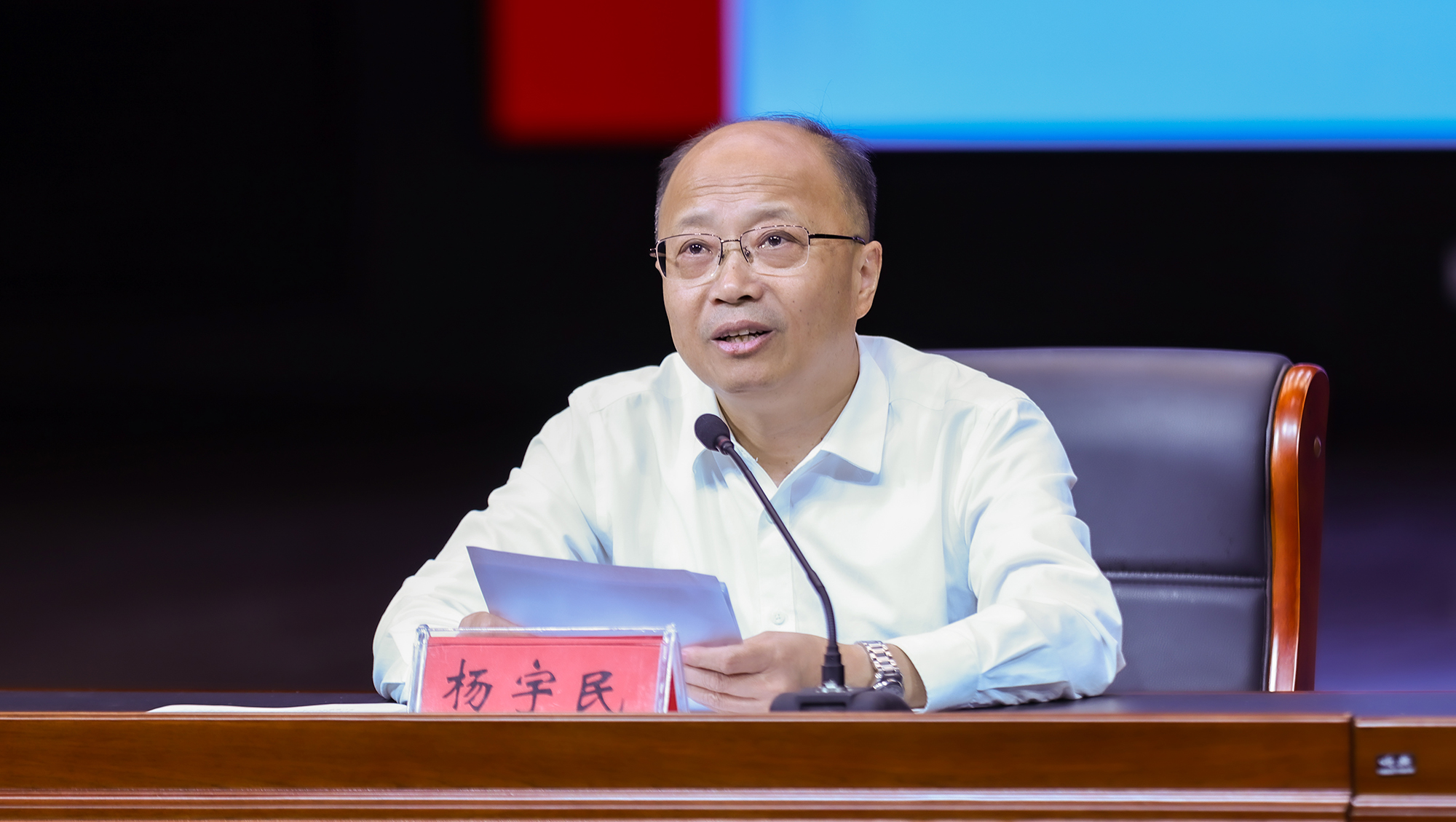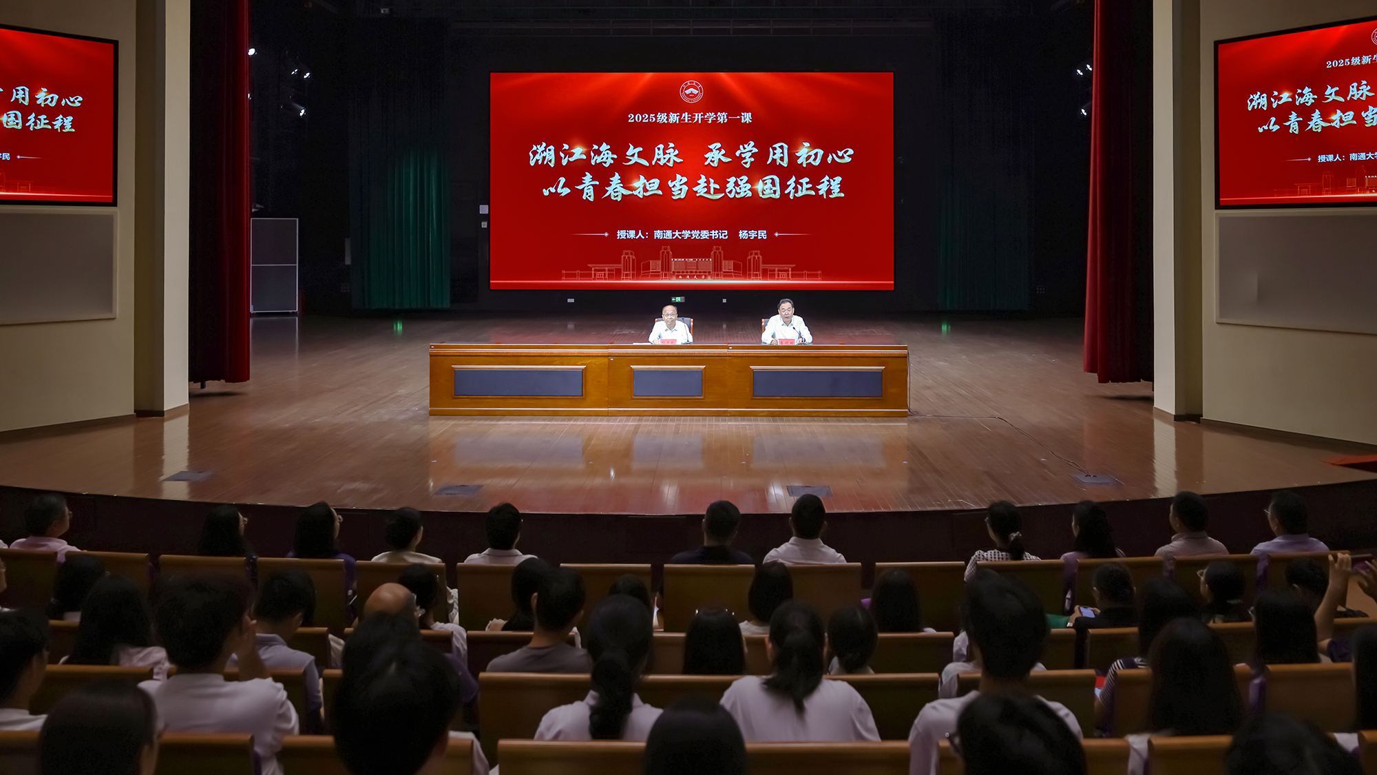 9月29日下午,校党委书记杨宇民以《溯江海文脉 承学用初心 以青春担当赴强国征程》为题,为全体2025级新生讲授“开学第一课”。校党委常委、副校长吉明明主持活动。校党委常委、宣传部部长陶锋出席活动。