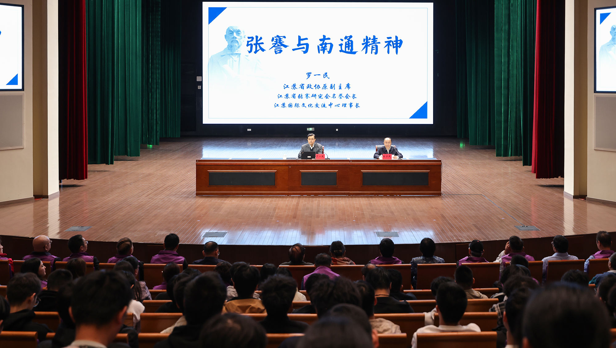 10月22日下午,江苏省政协原副主席、江苏省张謇研究会名誉会长、江苏国际文化交流中心理事长罗一民应邀来校,为广大师生做题为“张謇与南通精神”的讲座。校党委书记杨宇民主持活动。校党委副书记王卫东、副校长陈玉娟出席活动。