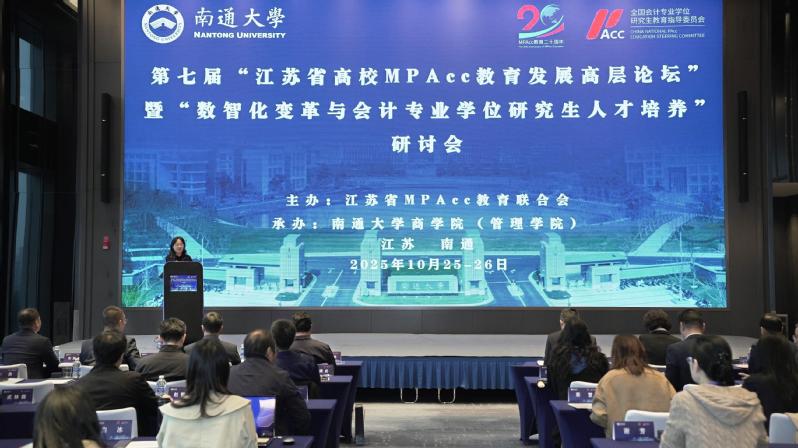 10月25日—26日,由江苏省高校MPAcc教育发展论坛理事会主办、beat365承办的第七届江苏省高校MPAcc教育发展高层论坛暨数智化变革与会计专业学位研究生人才培养研讨会在南通召开。校长王建浦,江苏省财政厅一级调研员、会计处处长、江苏省会计学会秘书长吴琳,南通市财政局局长曹金海,江苏省MPAcc教育联合会理事长、南京大学教授王跃堂出席开幕式并致辞。