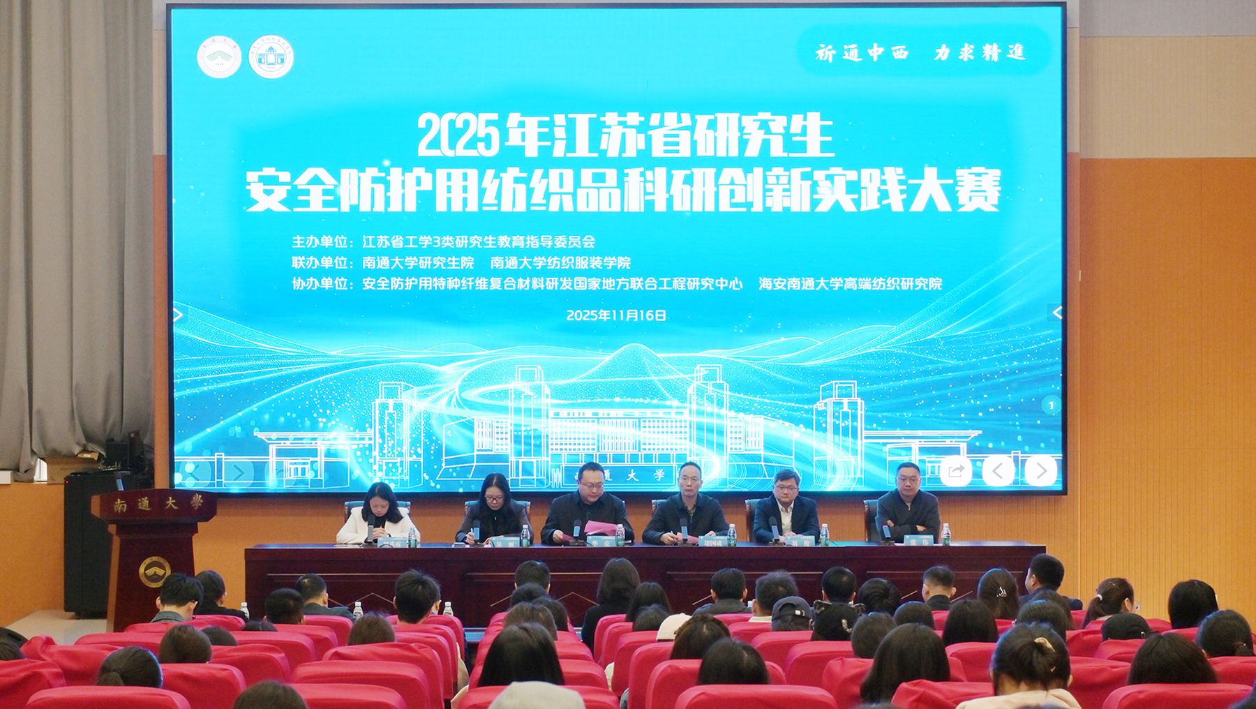 堵国成指出,作为我国纺织产业的重要集聚地,江苏在纺织科技研发、产业升级转型中始终走在全国前列。安全防护用纺织品作为纺织领域的“高精尖”分支,是守护人民生命安全、保障特殊行业发展、支撑国家应急体系建设的战略性产业,其技术创新水平直接关系到民生福祉与产业核心竞争力。他希望通过此次赛事平台实现三个“搭建”,一是搭建思想碰撞的平台,让全国纺织相关学科研究生在交流比拼中开阔学术视野、激发创新灵感;二是搭建学以致用的平台,引导大家将实验室里的理论成果转化为解决实际问题的技术方案;三是搭建人才对接的平台,让行业看到青年学子的潜力,形成“以赛促学、以赛促研、以赛促用”的良性循环。