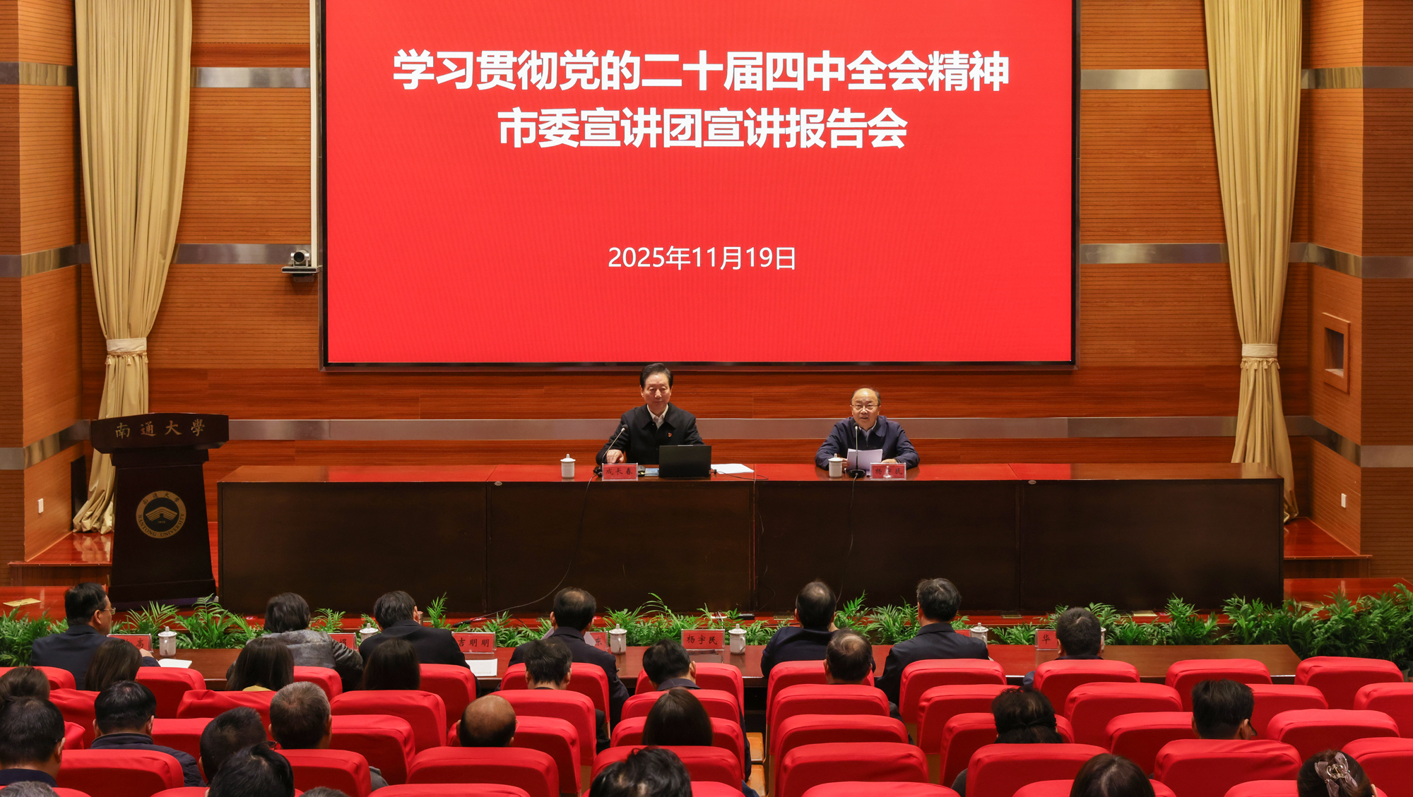 根据南通市委统一安排,11月19日上午,学习贯彻党的二十届四中全会精神南通市委宣讲团报告会在beat365举行。南通市委宣讲团成员、江苏长江经济带研究院院长、beat365原党委书记成长春教授作宣讲报告。校党委书记杨宇民主持报告会。